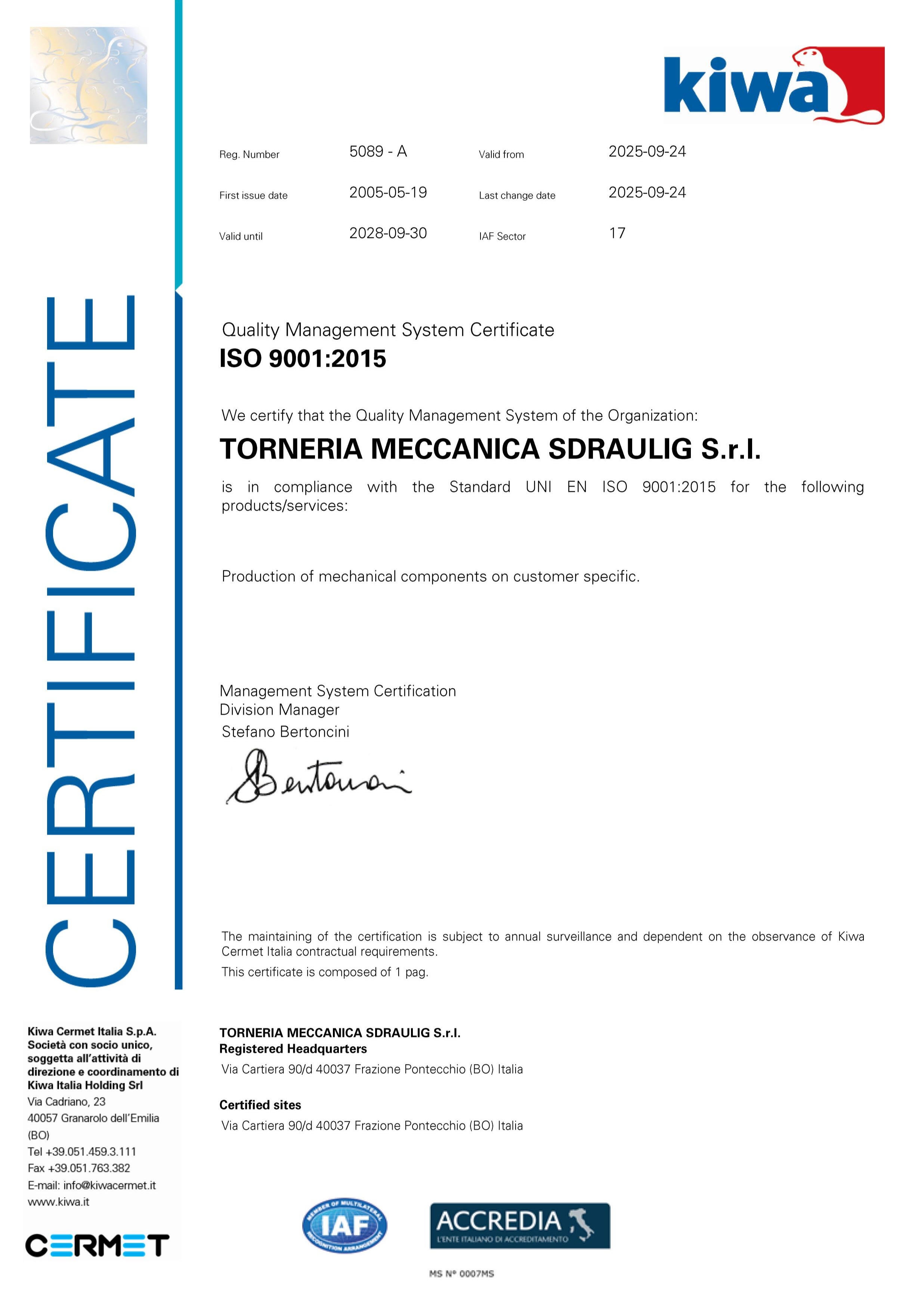 PC 5089 certificato ISO 9001 del 24-09-2025